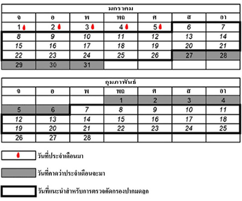 โปรดนัดหมายก่อนหรือหลังมีประจำเดือน คุณอาจประมาณวันที่ดังนี้: เช่น